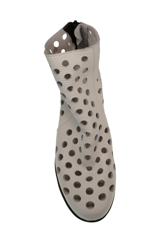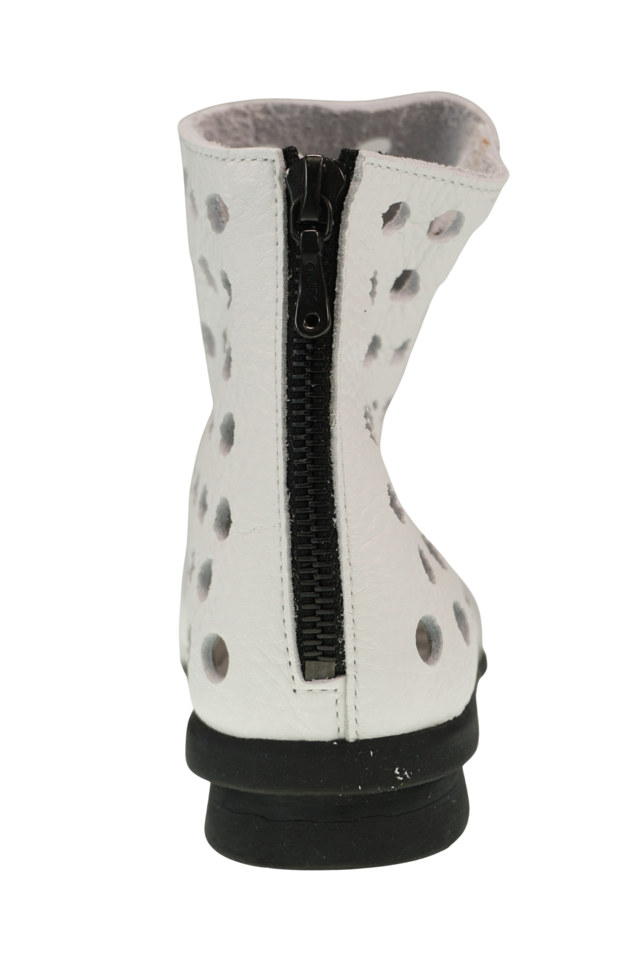 Durch den Reißverschluss an der Rückseite ist das An und Ausziehen super bequem. Die Perforation des Leders lässt Luft durchströmen und erfrischt die Füße. Dato hat eine flache Natur-Latex-Laufsohle für maximale Dämpfung und Komfort.
